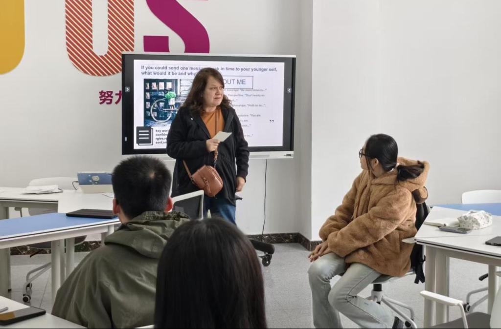 2025年11月20日下午,青岛大学公共外语教育学院、青岛大学英语服务志愿者协会(English Service Association of Qingdao University)在浮山校区西院慧创空间201室成功举办了第38期英语沙龙活动:“A Message to My Past Self”。外籍教师Diane Thayer、Scott Stephenson、Debra Stephenson和英语爱好者共同参与了本次活动。