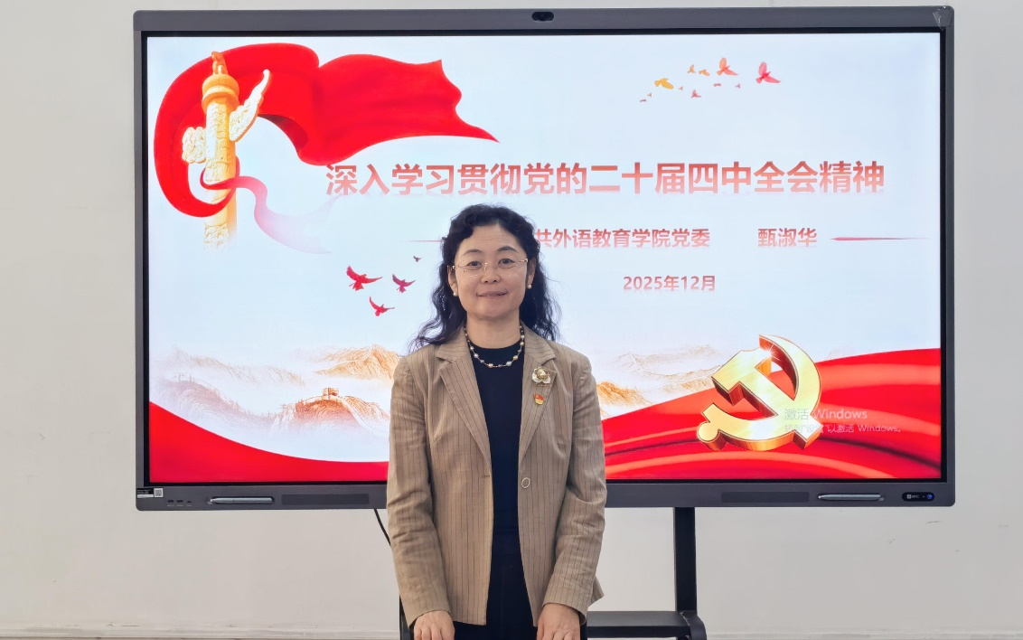 12月18日下午,我院在睿思楼202会议室召开全体教职工政治理论学习会,院党委书记甄淑华就党的二十届四中全会精神作了宣讲。