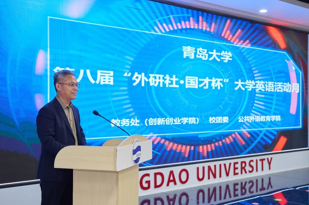 10月16日下午,青岛大学第八届“外研社•国才杯”大学英语活动月在浮山校区大学生科创文化中心二楼青年大讲堂隆重开幕。教务处副处长吕途出席开幕式并致辞。我院党委书记甄淑华,院长国林祥,副院长陈安榕、佴云国参加活动。开幕式由国林祥主持。