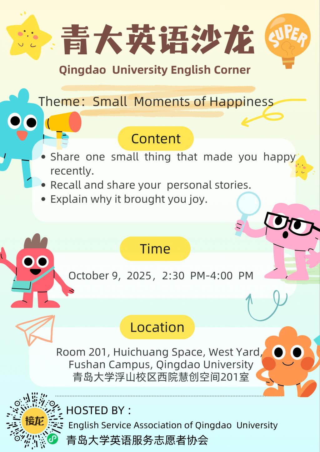青大英语沙龙第36期:“Small Moments of Happiness”
